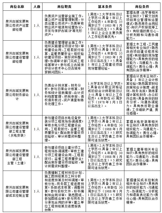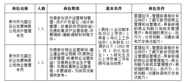 (四)公开招聘未尽事宜,解释权归泉州文化旅游发展集团有限公司所有。
