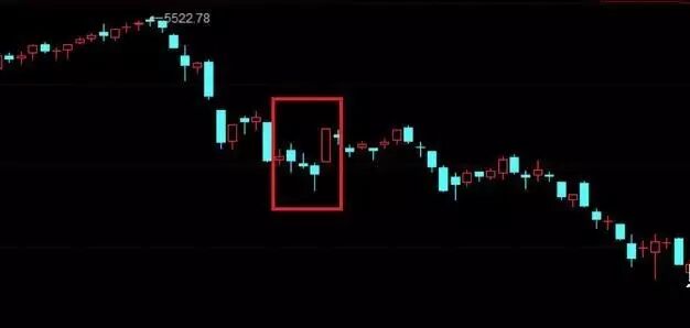“在行情持续下跌中出现一根大阳线,此大阳线将前三天的跌幅完全包容,这是绝好的逃命线,投资人宜尽快平仓,价格将持续下跌。
