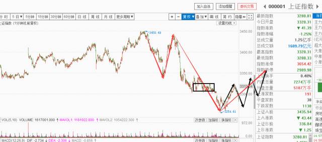 假如跌破了3254点,也是三十分钟线段的第五段,假如形成盘背,也会有一个至少五分钟的反弹。