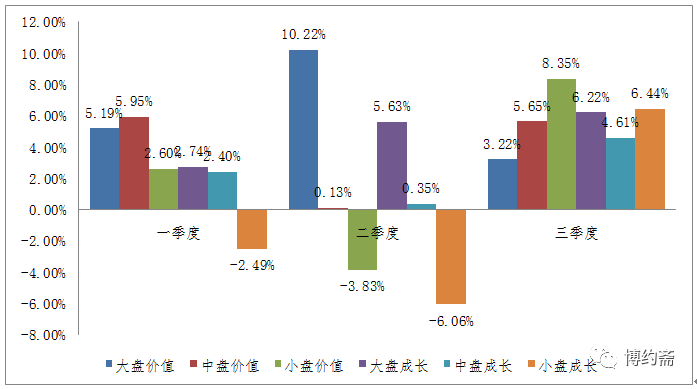如果把不同风格拆分在不同季度来看,我们可以很明显得看出来这种“极而复反”的效应,所以分化是主旋律,主板和中小创相互切换也是常有的节奏。