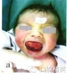 患儿女,G1P1,孕39周,2013-09-23顺产。因发现口腔巨大包块8 h当日收入昆明市儿童医院口腔科。查体:体重2.4 kg,体温36.2℃,呼吸45次/min,心率120次/min。一般情况及反应差,前囟约1.0 cm×1.0 cm,平软。皮肤无黄染,缺氧不明显,三凹征阴性,瞳孔等圆等大,对光反射正常引出;双肺呼吸音粗,未闻及哕音,心律齐,心音有力,未闻及杂音;腹软,肝、脾未及,肠鸣音正常。肌张力正常,拥抱、握持反射正常引出。
