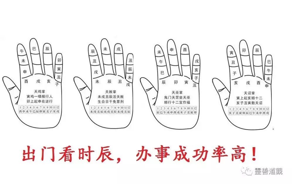 小六壬预测方法,南方称六宫掌打时法,特别在湘中地区,此法应用长盛不衰,十分活跃和灵验。 一)、基础知识 1、月份:正月,二月,……,十二月; 2、日辰:初一,初二,……,二十八(二十九、三十)。 3、时辰: (1)子时(23点~1点);(2)丑时(1点-3点);(2)寅时(3点-5点);(4)卯时(5点~7点);(5)辰时(7点-9点)(6)巳时(9点~11点);(7)午时(1l点~13点);(8)未时(13点-15点);(9)申时(15点~17点);(10)酉时(17点-19点);(11)戌时(19点~2l点);(12)亥时(21点~24点)。 4、六神:大安、留连、速喜、赤口、小吉、空亡。 5、六宫掌诀定位。 ①大安定位——食指根部; ②留连定位——食指指尖; ③速喜定位——中指指尖; ④赤口定位——无名指指尖; ⑤小吉定位——无名指根部; ⑥空亡定位——中指根部。 掐算顺序按①大安——②留连——③速喜——④赤口——⑤小吉——⑥空亡,此顺序永远固定不变。 ![]()