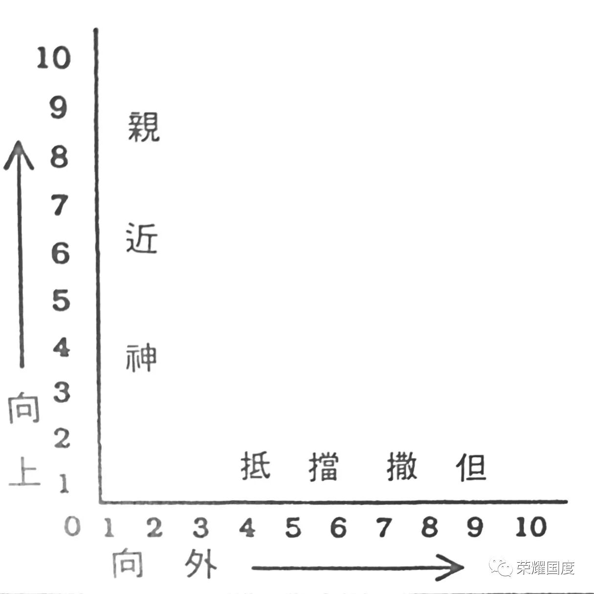 要了解向上和向外之间的关系,雅各书四章七至八节是主要的经文:「故此你们要顺服,务要抵挡魔鬼,魔鬼就必离开你们逃跑了。你们亲近神,神就必亲近你们。有罪的人哪,要洁净你们的手。心怀二意的人哪,要清洁你们的心!」