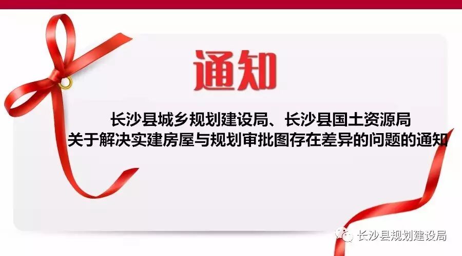 为了维护规划实施的权威性、严肃性,确保不动产登记的公正性,准确性,规范建设工程规划核实和不动产登记实施过程中,在总面积不变的前提下,建筑平面内布局与已审批的规划报建图存在不同程度差异的问题,根据湖南省住房和城乡建设厅湘建房〔2016〕189号文件精神,经长沙县国土资源局与长沙县城乡规划建设局共同商榷决定,拟建立房屋测绘成果共享机制。