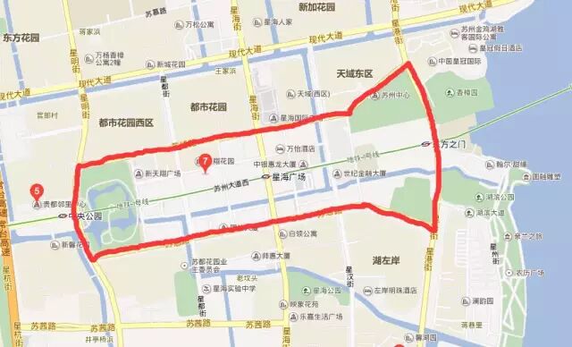 园区湖西CBD地区:星明街以东(不含星明街)、苏绣路以南、星港街以西(不含星港街)、苏惠路以北区域内的所有道路。