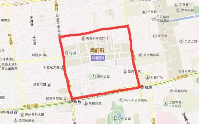 观前地区:干将路、临顿路、因果巷、旧学前、人民路范围;