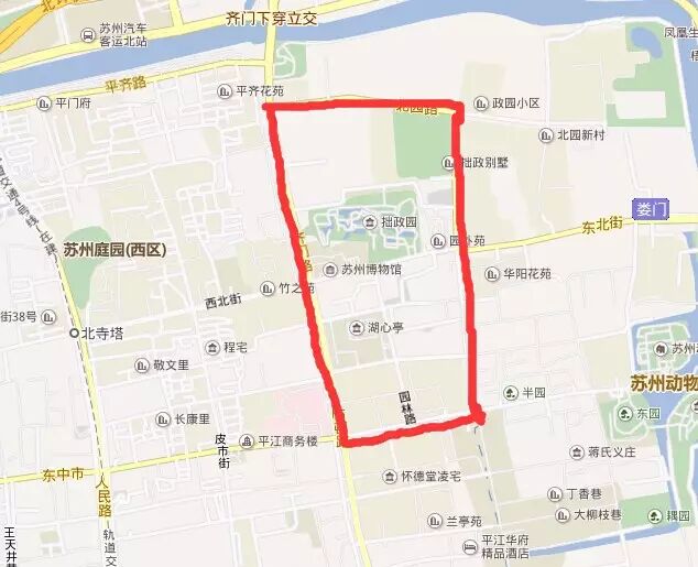 东北街园林景区:白塔东路、临顿路、北园路、百家巷范围;