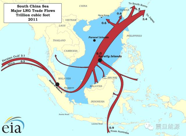 同样,经过此地区的天然气贸易将会受到影响。比较极端情况是,地区暂时无法通行2011年。根据能源信息署资料,每天有大约6万亿立方英尺的液化天然气通过,也就是说全球LNG贸易量的一半是通过的。