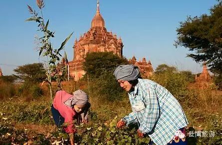 黄昏,金色的阳光洒在高耸的佛塔上,在绿色的原野上留下长长的影子。登上高塔,只见伊洛瓦底江弯弯曲曲,宛若长蛇在附近游过,河水返照出的夕阳的光辉,让原野上成百上千的佛塔涂上了一层夕阳的余晖。
