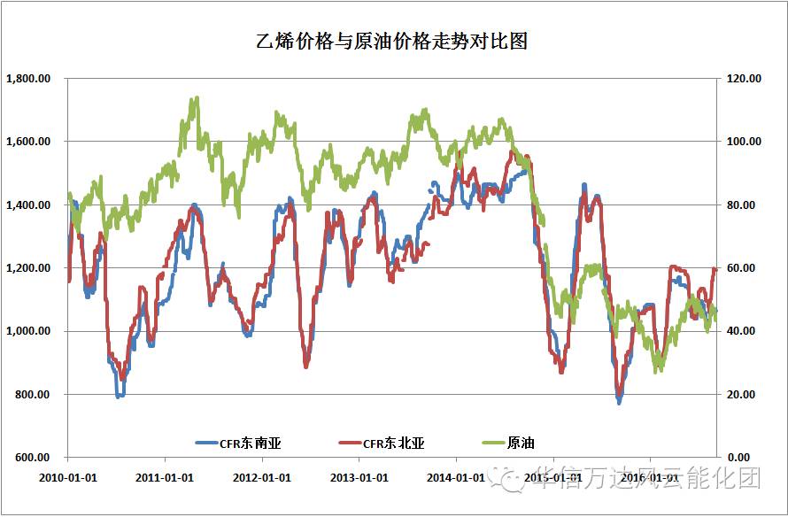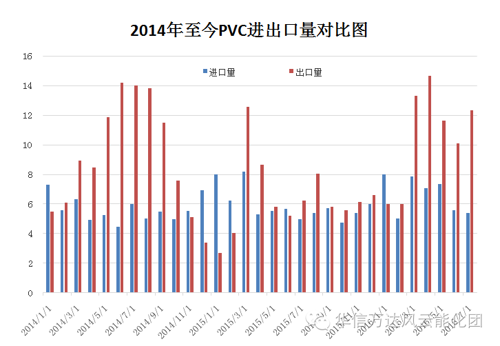 自2015年下半年原油触底反弹以来,今年原油价格也有两次大幅的下探,但乙烯价格一直保持震荡走高态势,今年大部分时间维持在1200美元/吨左右,国际乙烯价格的高企,给国内PVC出口带来了支撑,一方面国际乙烯价格高位,国际PVC价格震荡走高给国内PVC带来空间,另一方面,受到的影响,国内PVC出口后,在美元兑换人民币过程中,出现的由让所带来的利润更加吸引国内企业出口。