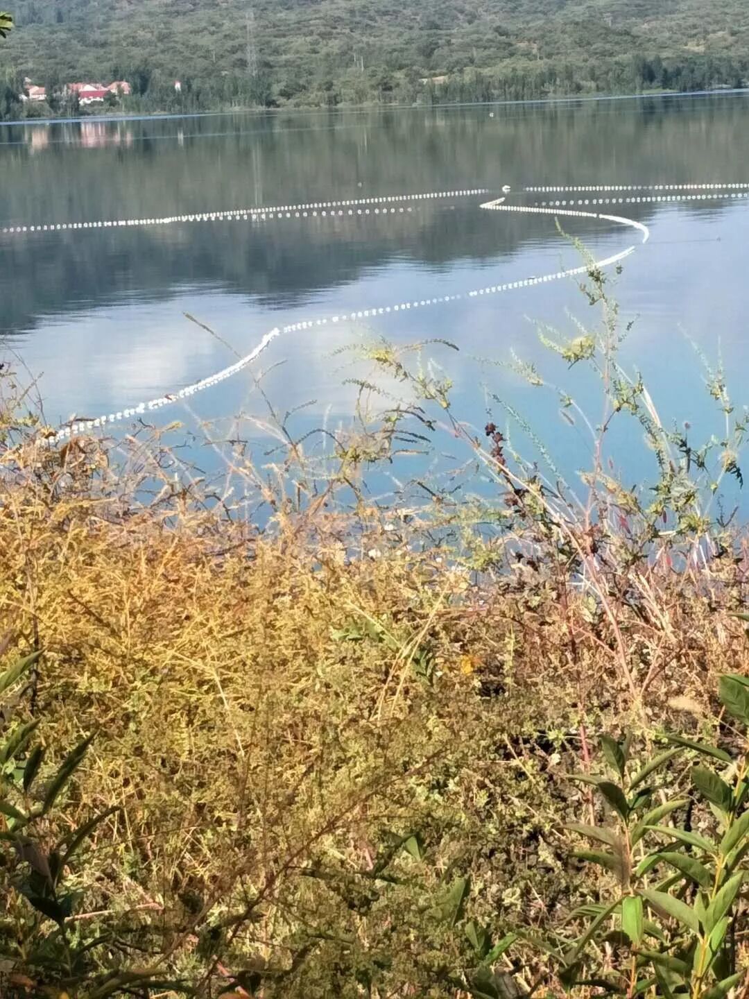 ▼网友爆料:水库东岸路 某地渔网还是什么又开始大规模放水域里养鱼了!