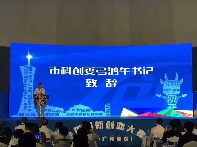 广州市科创委弓鸿午书记为启动仪式进行致辞。弓书记表示创新创业大赛是落实广州市打造国际科技创新枢纽,加快创新驱动发展等重大发展战略的重要举措。近年来,广州市科创委高度重视科技创新工作,依托1+9科技创新政策体系,着力发挥财政科技资金的放大引导作用,极大地活跃了全市科技投融资氛围。弓书记还说到,去年的第五届创新创业大赛广州广州赛区取得的成绩令人瞩目,广州赛区企业和团队报名数量分别比2015年增加413%和182%,诸多优质企业在国赛、省赛中取得优异成绩,广州赛区企业更是包揽了互联网行业赛近7成名次。科技创新体系加速了创新企业的快速发展,促进了广州市创新型人才和优秀领军者脱颖而出,为广州和广东创新驱动发展贡献力量。