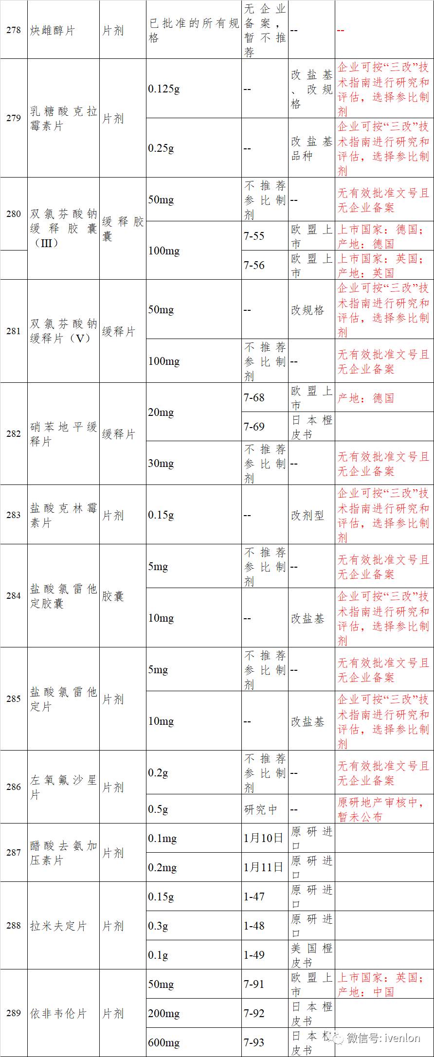 关于发布《289目录品种参比制剂基本情况表》的通知