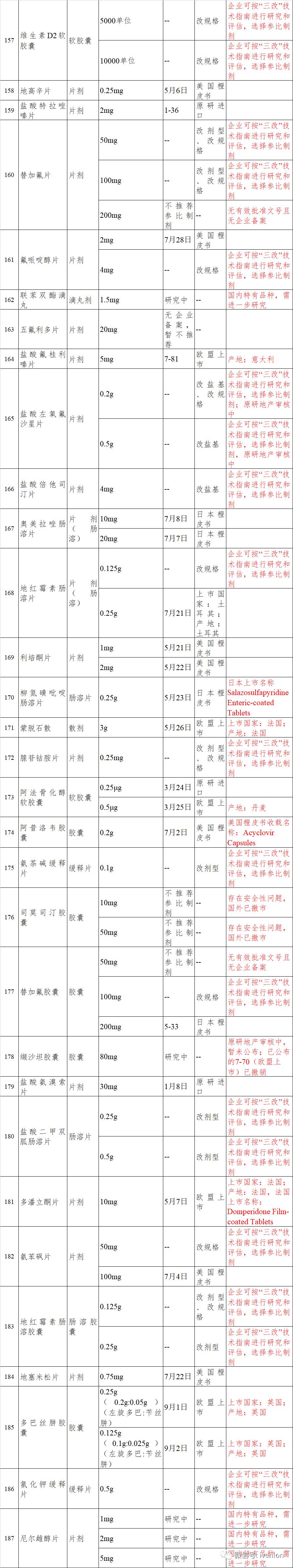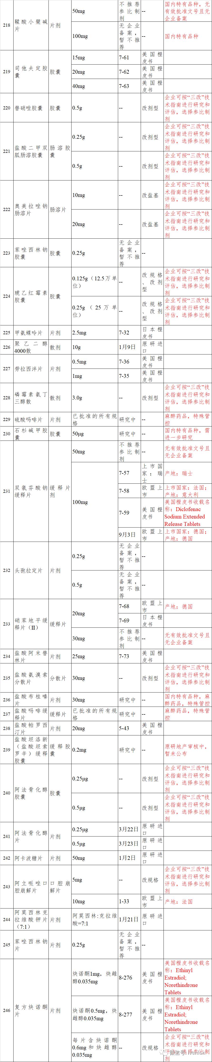 289目录品种参比制剂基本情况表