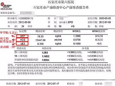 需结合预产期、体重、年龄和采血时的孕周等,计算生出先天缺陷胎儿的危险系数;
