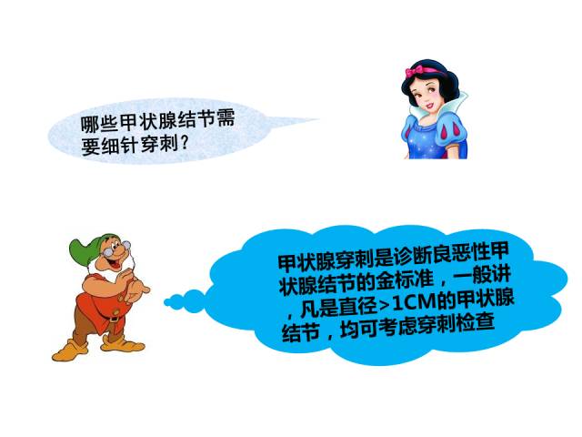 对结节处理很有帮助,该方法的广泛应用大大减少了不必要的甲状腺手术,提高了术中恶性肿瘤的发现率,减少了甲状腺结节的处理费用。细针穿刺细胞学检查的准确率达70%~90%,与穿刺及细胞学诊断的经验有关。