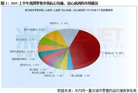 《本草纲目》有记载,丹参有活血、通心包络等功,现代中医药学临床表明,丹参能扩张冠状动脉,增加冠脉流量,改善心肌缺血、梗塞和心脏功能,调节心律,并能扩张外周血管,改善微循环。据米内网米—重点城市零售药品终端竞争格局数据显示,在我国35个主流城市零售药店市场中,2015年上半年治疗心绞痛、冠心病用药TOP 10产品中有9款是中成药,其中以丹参为原料的产品就有4个,包括了复方丹参滴丸、复方丹参片、参松养心胶囊、丹参保心茶。