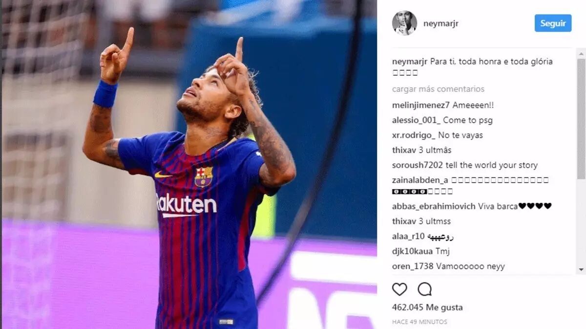 随后内马尔在社交媒体上发布了一张双手指天的庆祝动作的图片,并配上了这样一段文字:“一切都是为了你,所有的光荣与荣耀”。这究竟是什么意思?