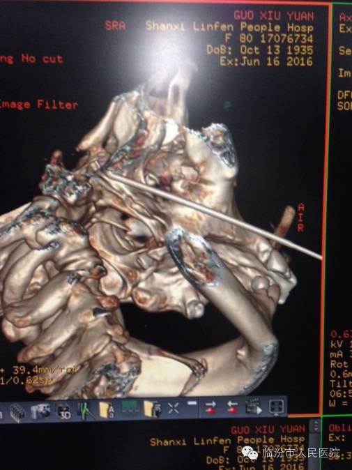 患者,女,80岁,主因右面部疼痛10余年,加重1月余入院。疼痛科张宝惠副主任医师和他的医疗团队为患者进行CT引导下经卵圆孔三叉神经半月神经节射频热凝术,手术非常成功,术后患者疼痛完全缓解,于次日出院。