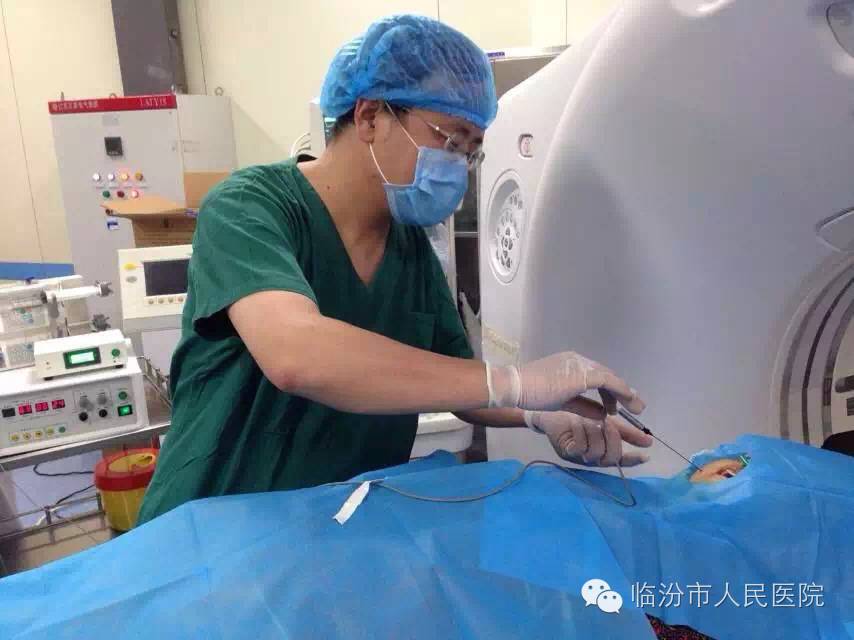 三叉神经痛系三叉神经分布区内反复发作阵发性剧痛的一种疾病,原因不明,也可继发于其他疾病,是常见的疼痛性疾病。该病的诊断容易,治疗较困难。一般的患者可以采用口服药物治疗,药物治疗无效的重度患者可选择神经节化学毁损术、射频热凝毁损术和微球囊压迫术。其中,射频热凝术的创伤较轻,疗效确切。但由于卵圆孔位置较深,解剖变异较大,周围重要结构较多,传统经皮盲目穿刺法难于准确到位,并发症较多,治疗效果欠佳,使得这一微创技术难以普及。通过CT引导可以提高穿刺的准确性,提高疗效,避免并发症。是一种安全、简单、患者易于接受的治疗方法。