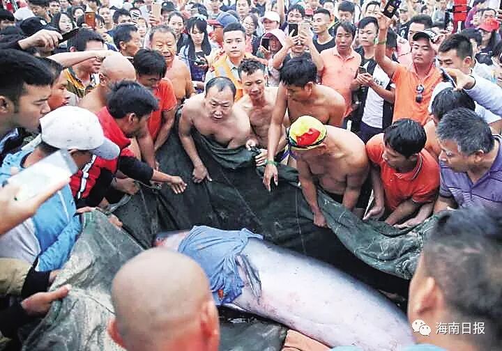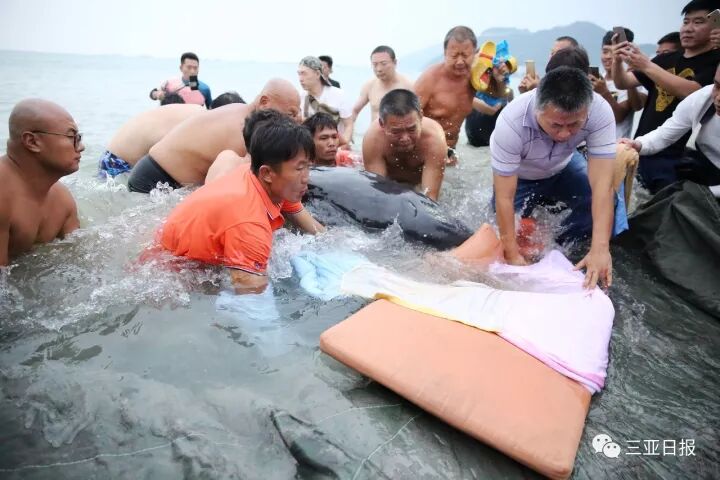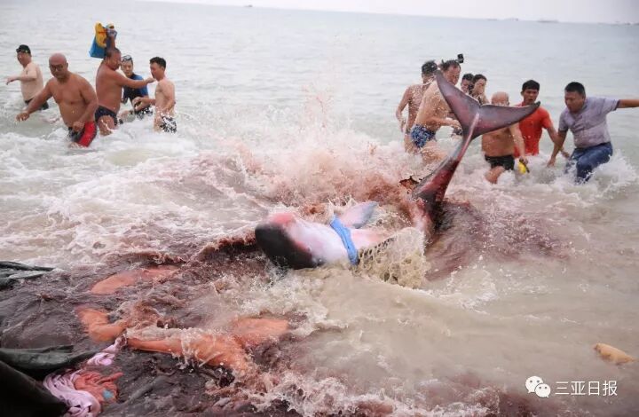 “ 9日,一则“大东海出现鲨鱼咬人”的小视频在朋友圈里被疯狂转发,引起了不少市民游客的恐慌。真相是,一只受伤的鲸鱼在三亚大东海搁浅,三亚海洋与渔业局联合多部门对该鲸鱼进行救治,目前已运送到救助基地。”