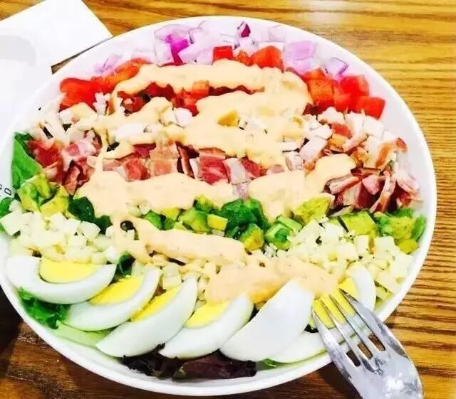 主推凯撒沙拉▶里面有鸡蛋,生菜,西红柿牛油果,鸡肉……配上美味的酱料,满满一大份端上来,无论是味道还是菜色都非常棒,时蔬也超新鲜。对于年后想吃清淡食物的亲们,这家沙拉不失为一种很好的选择哦~