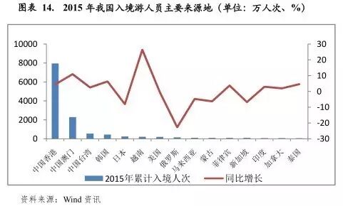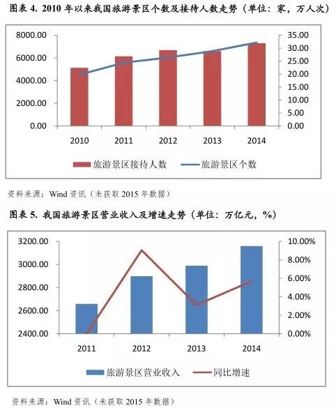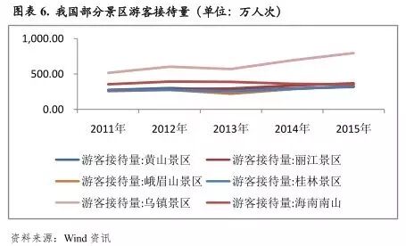 但需关注的是,旅游业易受宏观经济及外部突发事件影响。以黄山景区、峨眉山景区、乌镇景区等几家国内主要上市景区为样本,随着限制三公消费等政策的实施,2013年上述各主要旅游景区游客接待量出现明显下滑。2014年以来,受益于普通民众旅游消费需求的增长,各样本景区游客接待量明显回升。