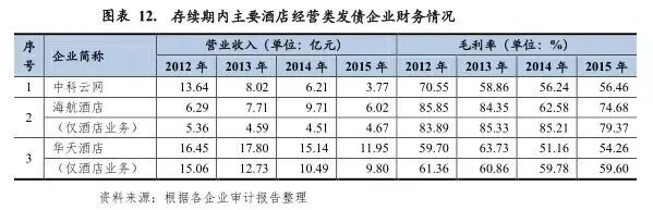 从行业内发债企业来看,由于酒店餐饮业属于完全竞争行业,各企业间竞争优势较不明显,因此发债企业相对较少。根据申万行业分类,目前尚处存续期内的酒店餐饮类企业发债主体仅10余家(包括公募债券及私募债券)。以行业内中科云网及华天酒店为样本,2014年以来两家企业分别发生未及时拨付兑付资金及评级展望调低的负面事项。其中中科云网发行的“12湘鄂债”发生了实质性违约。华天酒店则因为酒店业务收入下降等原因,其评级展望由稳定调整为负面。