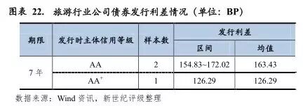 2016年上半年度,西安曲江文化产业投资(集团)有限公司、四川省峨眉山乐山大佛旅游集团总公司(简称“乐山大佛”)、远洲集团股份有限公司(简称“远洲集团”)、九华集团和云南世博各发行1支公司债券,主体级别分布在AA-~AA+级。其中乐山大佛主体级别为AA+级,级别相对较高,一定程度上降低了融资成本,发行利差最小;远洲集团主业为高星级酒店经营及相关房地产开发,受酒店行业政策调控影响,其主体级别为AA-级,发行利差高达525.29个基点;因浙江远洲控股有限公司对其债券提供不可撤销连带责任担保,其债券信用等级为AA级。