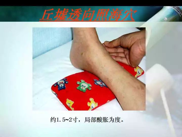 足内翻加丘墟透照海。