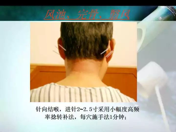 3、对于恢复期和后遗症期,按照“小醒脑”针刺法操作,但病情严重者可使用“大醒脑”针刺法,亦可交替使用。