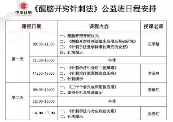石学敏院士的“醒脑开窍法”以 石氏单元中风疗法脑血管病的理论基础,中风单元的中药临床应用,针刺量化手法在临床的应用,中风病并发症、合并症的临床治疗,醒脑开窍法的理论和临床实践,中风单元康复理论和实践,中风疗法学术交流、研讨及临床演示带教;