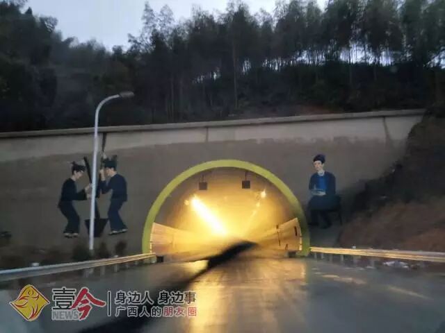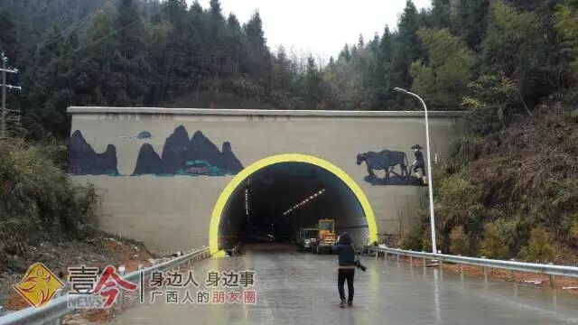 【12:08】记者发现,每个隧道口的墙壁上,都画上了富有民族特色的壁画。工作人员介绍,由于三柳高速穿越多民族地区,从三江到柳州,隧道上的壁画依次是侗族,苗族,仫佬族,壮族等壁画,完全是一条具有浓郁民族风的风情高速路。