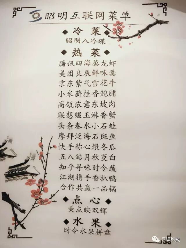 就像充满诗意的乌镇一样,菜单上的菜品都是以诗句命名,诗句中还取巧的包含“腾讯”、“小米”、“美团”这些字样。