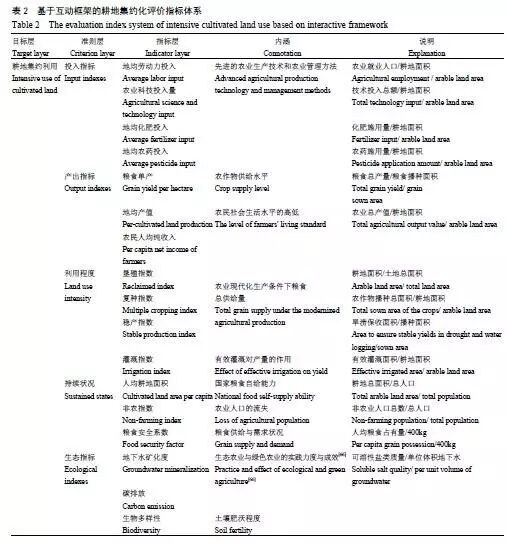 运用频度、投入或产出等单项指标测度能够在单个侧面对耕地集约化进行深入剖析,但难以全面反映耕地集约利用的综合性。因此,通常将频度、投入与产出指标等相结合,构建综合评价指标体系或集约度指数模型开展评价分析。