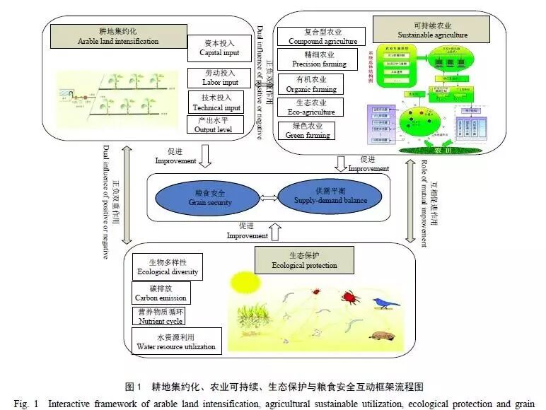 1 耕地集约化与农业可持续、生态保护及粮食安全的互动框架
