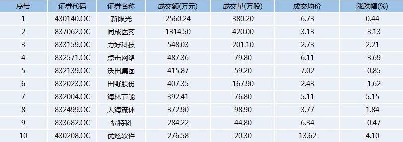 图2:昨日(6日)挂牌公司股票成交金额前10名(做市)
