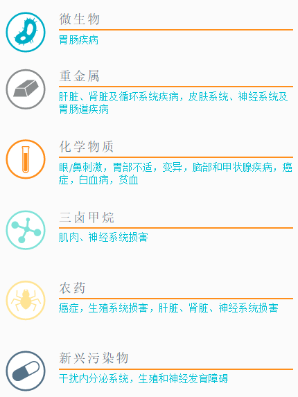 * 潜在健康影响资料来源: 美国国家环境保护局小册子 815-K-97-002 |
