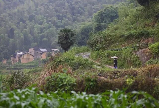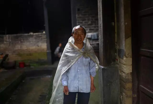 自从母亲病后被接走照顾,稍具意识的二儿子乐建作每天都会往返1.5公里来看母亲一眼,再静静坐一会儿。湖北通山县孟垅村四门湾雨中的小路上,61岁的乐建作头戴斗笠走着。乐建作不足1.6米的身躯穿一双蓝色的高筒雨靴,踩在湿软的土地里,有些步履蹒跚