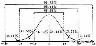 其中:1= 68.26% 2=95.46% 3=99.73% 6=99.9966% 误差为百万分之3.4
