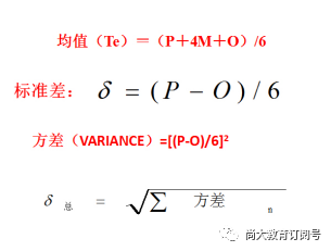 通过估计的三个时间值,计算出两个参数,分别是均值和标准差,计算公式如下: