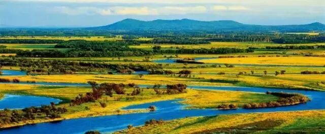 弯弯曲曲的河道宛若一条银色的飘带,