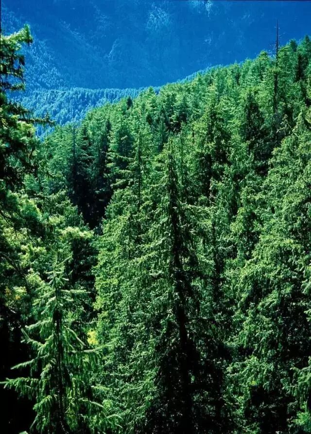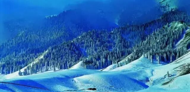 一条气势磅礴的银色长龙深入森林,宏伟而壮观,最奇特的是在冰川旁边还有高达79℃的高温温泉和茂密的原始森林。——杨逸畴