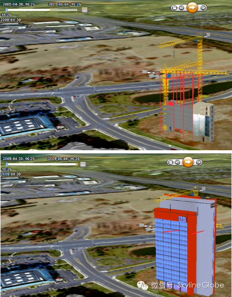 BIM技术也结合了施工方案、施工模拟和现场视频监测,对其进行可视化模拟,很大程度上减少了建筑质量、安全、返工和整改等一系列问题,借助skyline三维GIS平台以及BIM特色的属性,可对其进行工作量统计,从而整个施工过程得到了全数字化的管理。