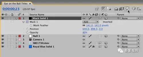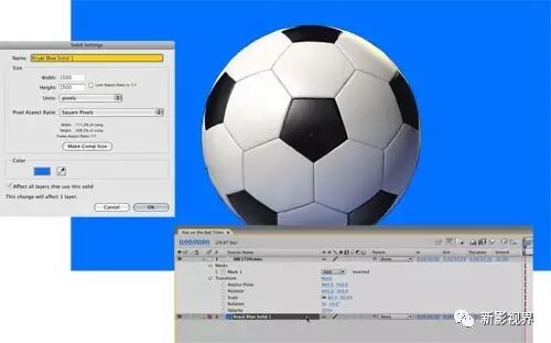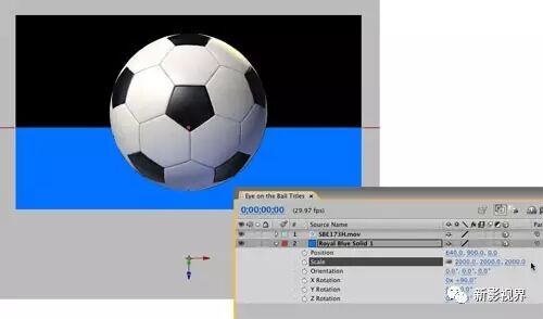 给球在做一个阴影效果,新建一个固态层,黑色使用圆形遮照,边缘柔化141,旋转X轴90度,调整位置,到球的下方。