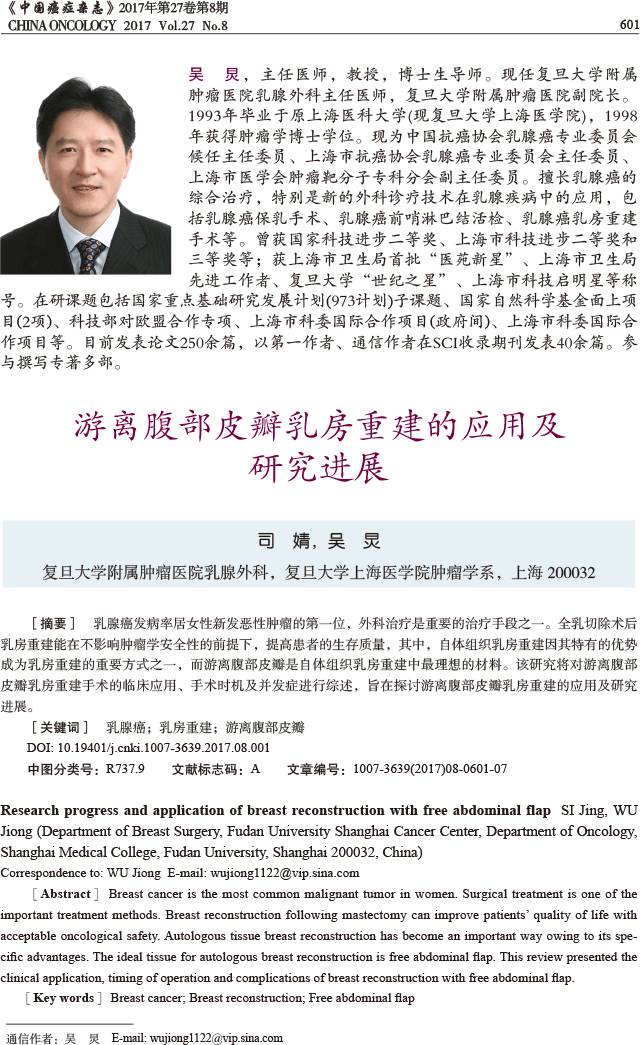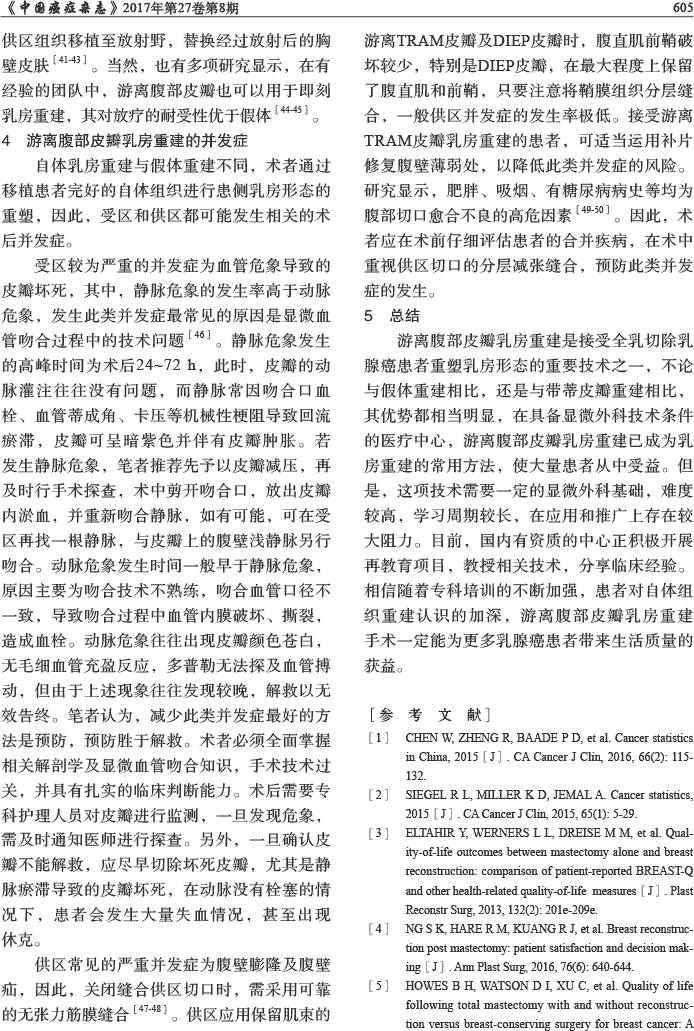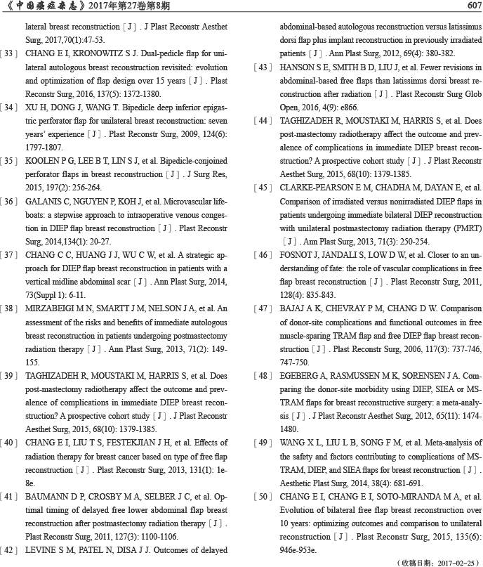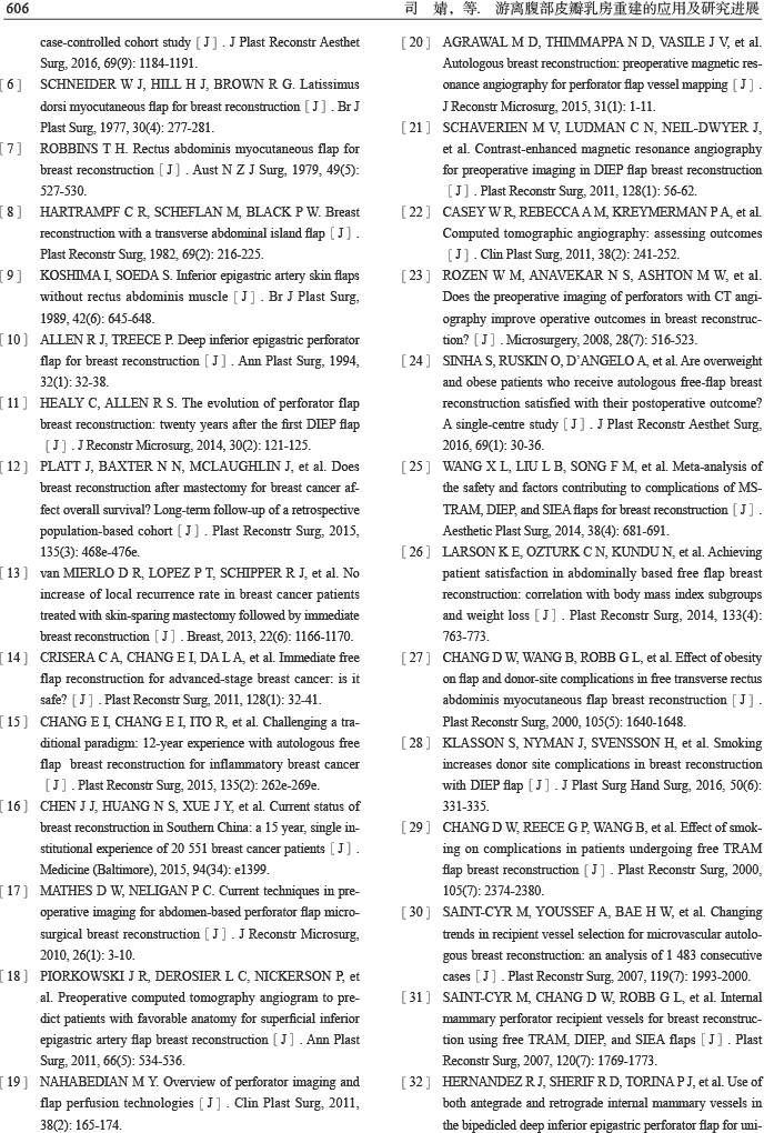 Chen J J, Huang N S, Xue J Y, et al. Current status of breast reconstruction in Southern China: a 15 year, single institutional experience of 20 551 breast cancer patients. Medicine (Baltimore), 2015;94(34):e1399.