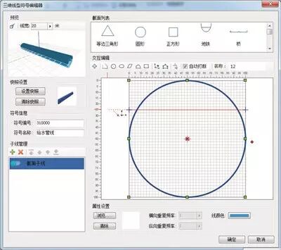 通过SuperMap GIS提供的线型符号库(如图5),用户可根据管线类型,自定义管线的截面,然后再根据管线类型、材质、半径等属性信息,配置相应风格,最后通过截面放样的方式对管线进行批量的三维建模。
