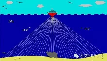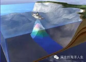 ③多波束测深:20世纪70年代,出现了多波束测深系统,它能形成一定宽度的全覆盖的水深条带,可以比较可靠地反映出海底地形的细微地貌起伏,也可称为微地貌测量,比单波束水深测量确定海底地形更为真实。多波束测深系统通过接受波束形成技术能够实现空间精确定向,利用回波信号的某些特征参量进行回波时延检测以确定回波往返时间,从而确定斜距以获得精确的水深数据,绘制出海底地形图,达到海底地形精确测量的扫测目的。