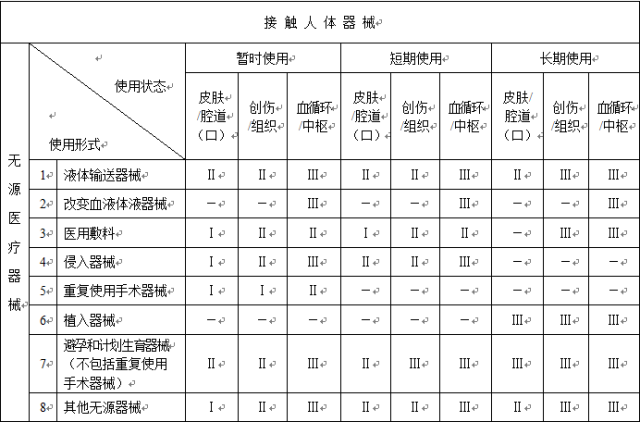 注:1.本表中“Ⅰ”、“Ⅱ”、“Ⅲ”分别代表第一类、第二类、第三类医疗器械;