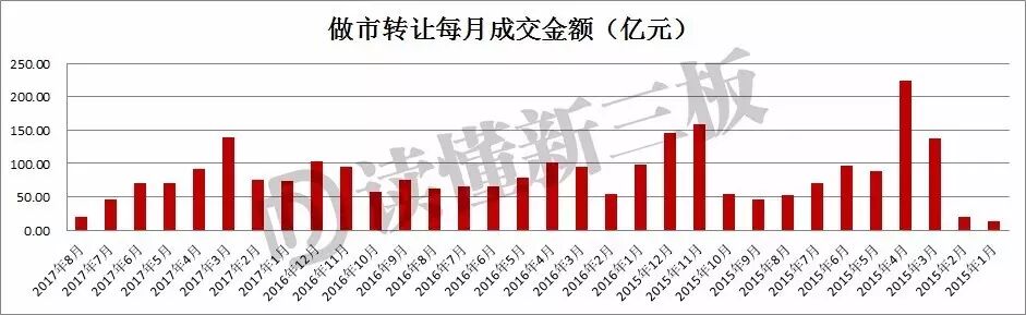 股灾之后的2015年9月,做市成交额达到最低点,当月成交46.33亿元;而今年7月,做市成交额为45.79亿元。已低于当时的水平。